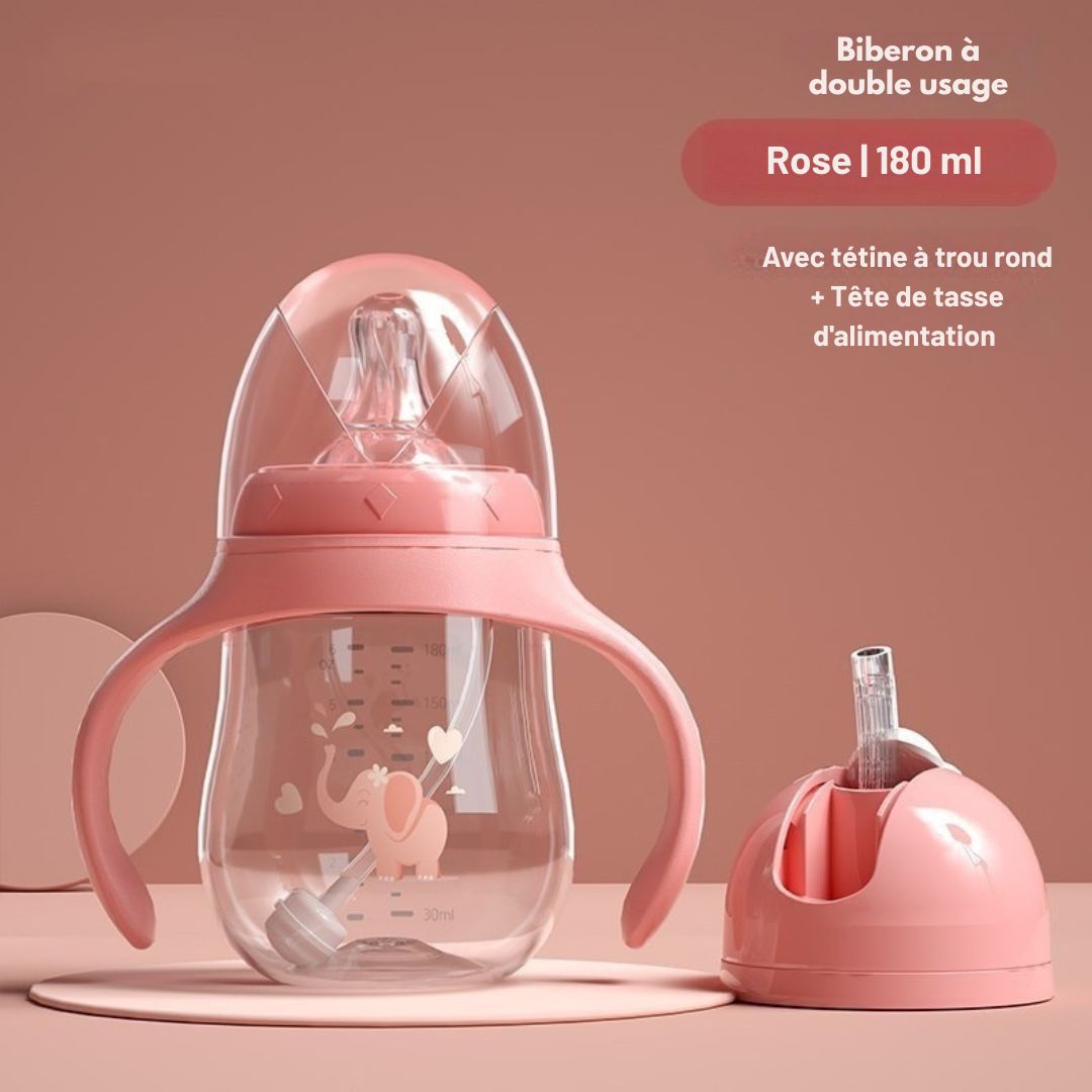 🍼 Double usage intelligent : équipé d’une tétine sein-like et d’un embout paille anti-fuite, EasySip™ évolue avec votre enfant de la tétée à la boisson autonome.
