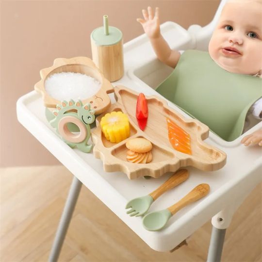DinoBambou JoySet™ – Coffret repas bébé en bambou, ventouse puissante